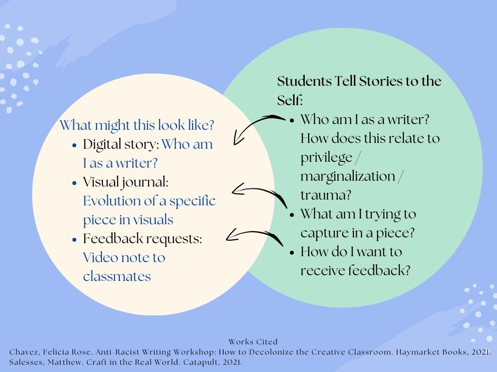 Figure 3. Storytelling for writers to explore their own identities and experiences in creative writing classrooms.